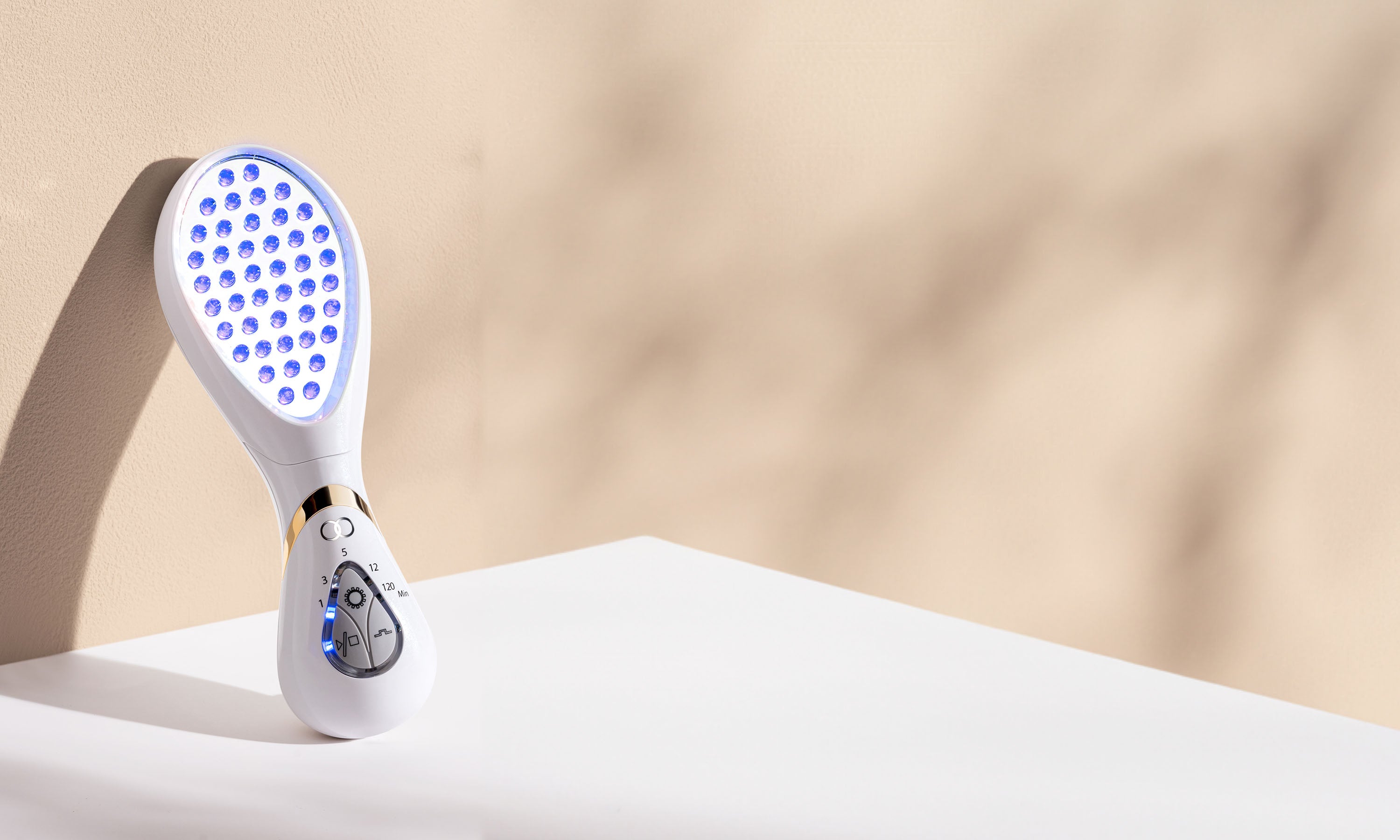 Both red and blue light boast intense healing properties and repair the skin barrier, heal wounds, and reduce scarring