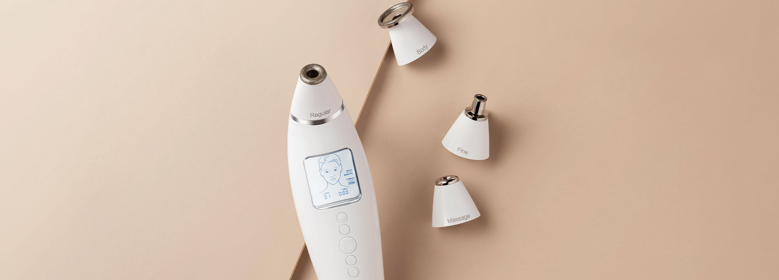 Our device's intelligent LCD screen displays essential information, including the timer, suction level, mode indicator, and battery level. No guesswork—just efficient skincare