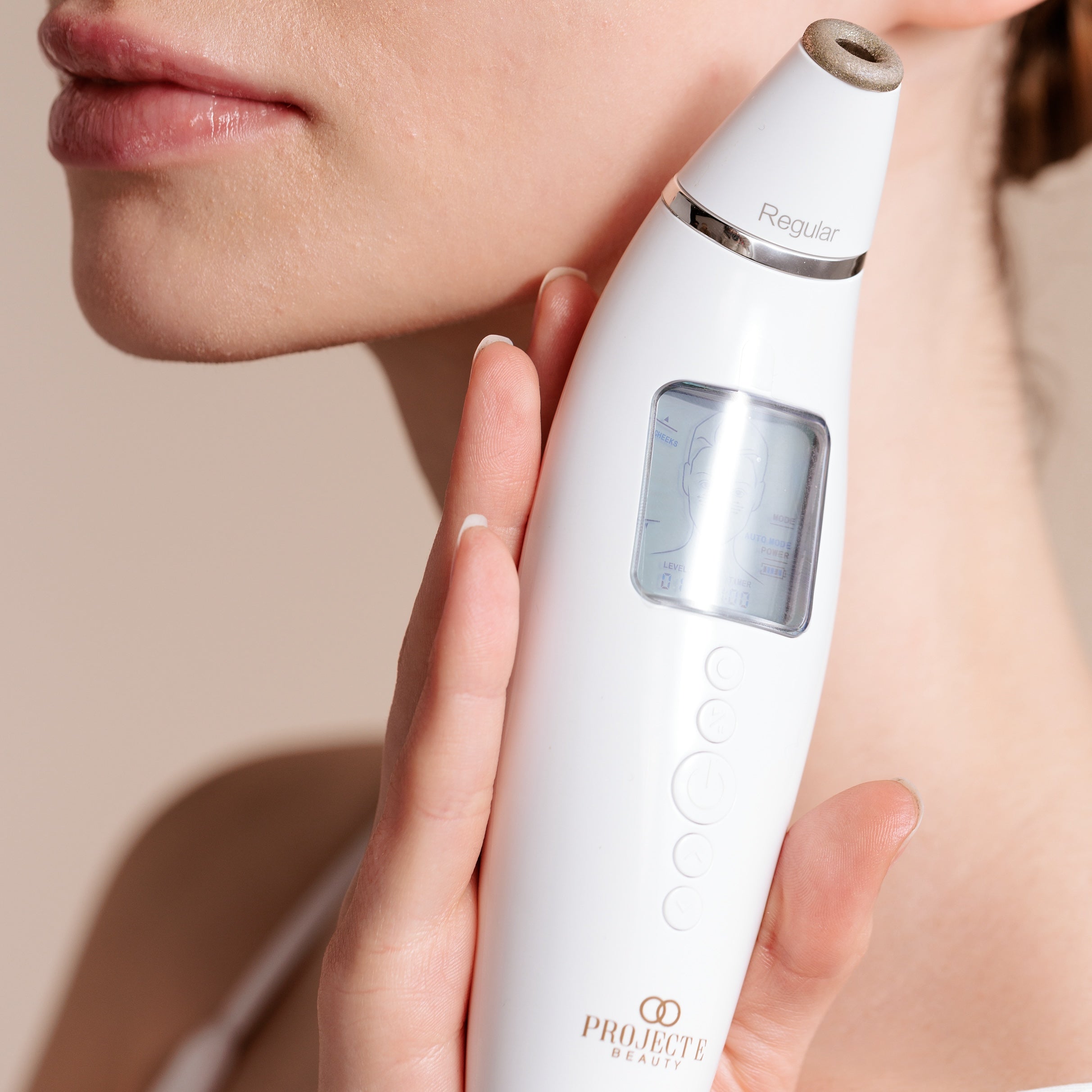 The simultaneous vacuum therapy effect suctions away excess oil and impurities to enhance the effect of microdermabrasion