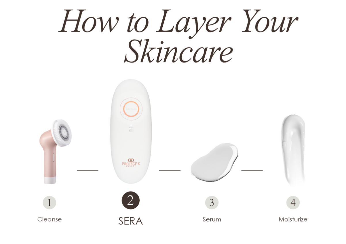 - Apply Project E Beauty Lift & Plump Hydration Gel to the face
