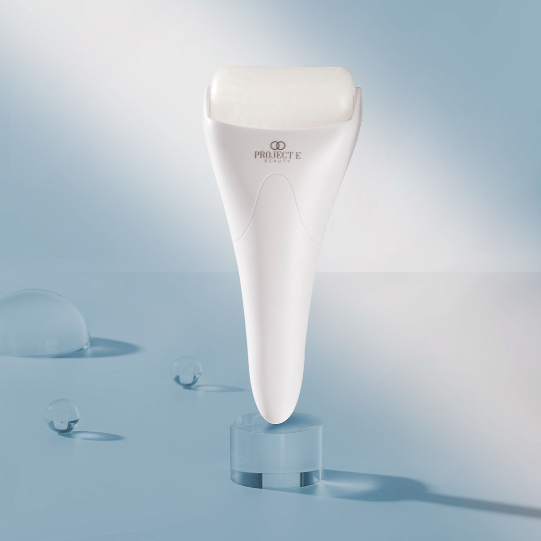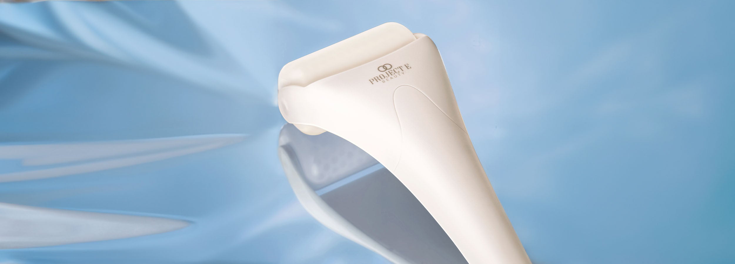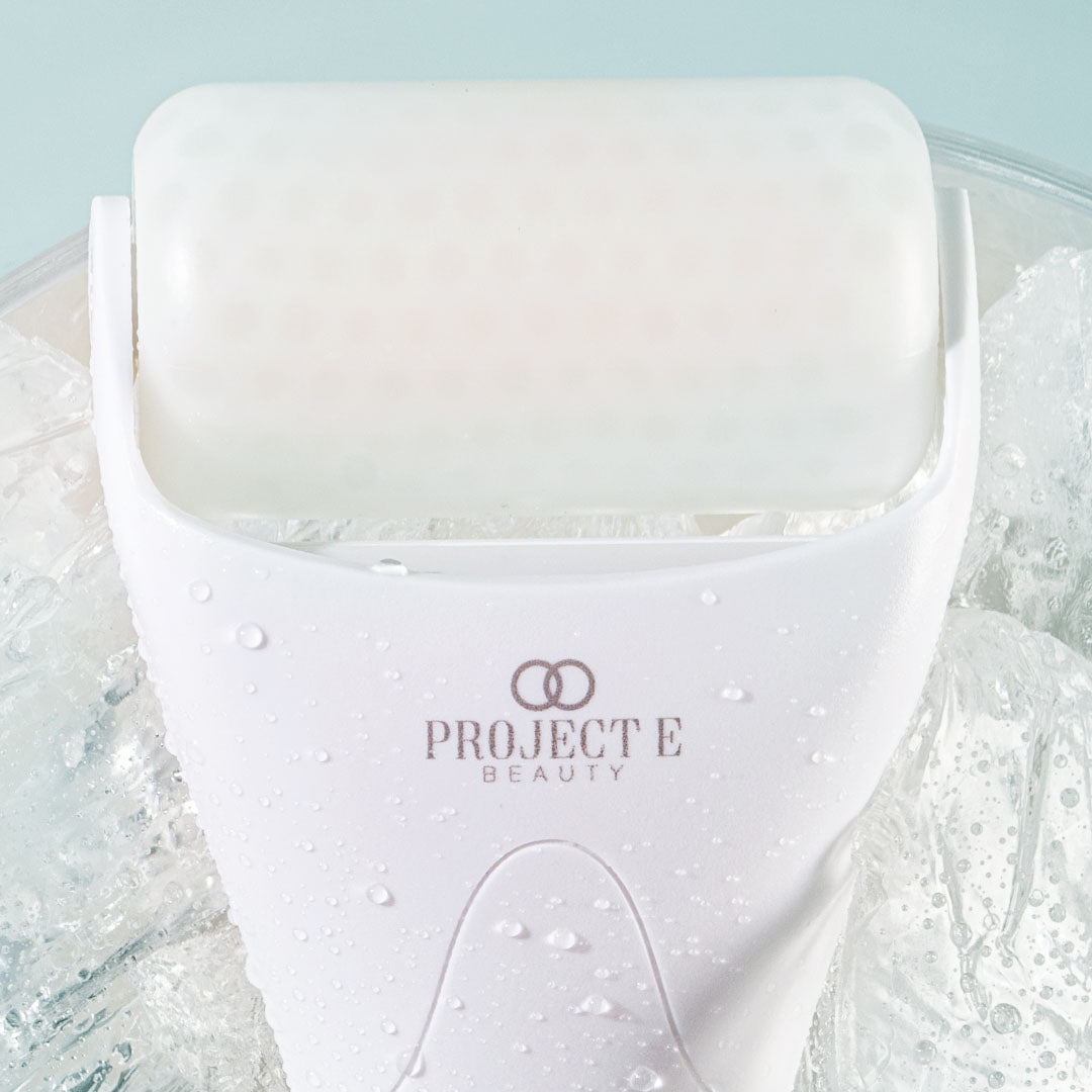 Glow-boosting cryotherapy roller using cold exposure techniques to depuff and sculpt for a fresh-faced complexion