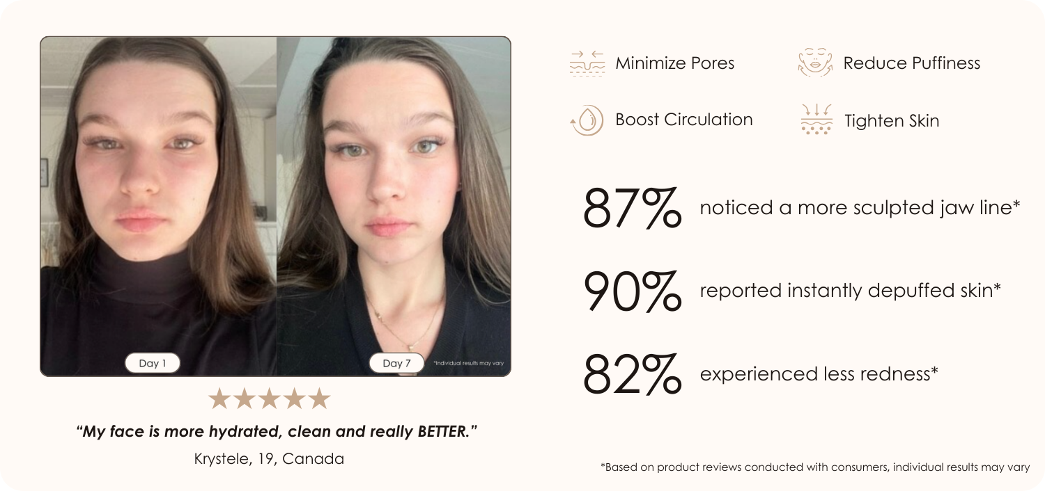 Ice Roller Cryotherapy Treatment before and after results showing reduced puffiness and brighter skin