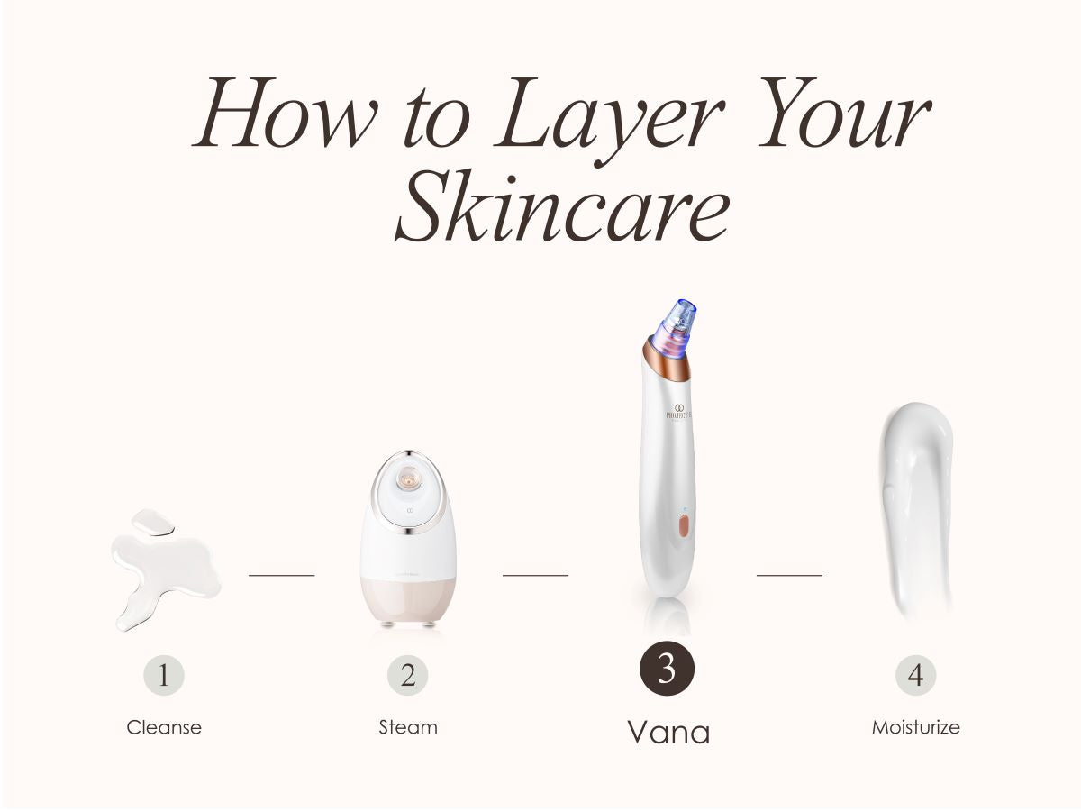The Vana does not cause irritation, but you might notice some redness post treatment. Cleanse your skin with a gentle cleanser to remove any excess dirt that has been extracted during the treatment. Apply a hydrating serum such as hyaluronic acid and use a cold press or cold steam to reseal pores. Avoid harsher actives and other chemical exfoliants for 2-3 days post treatment